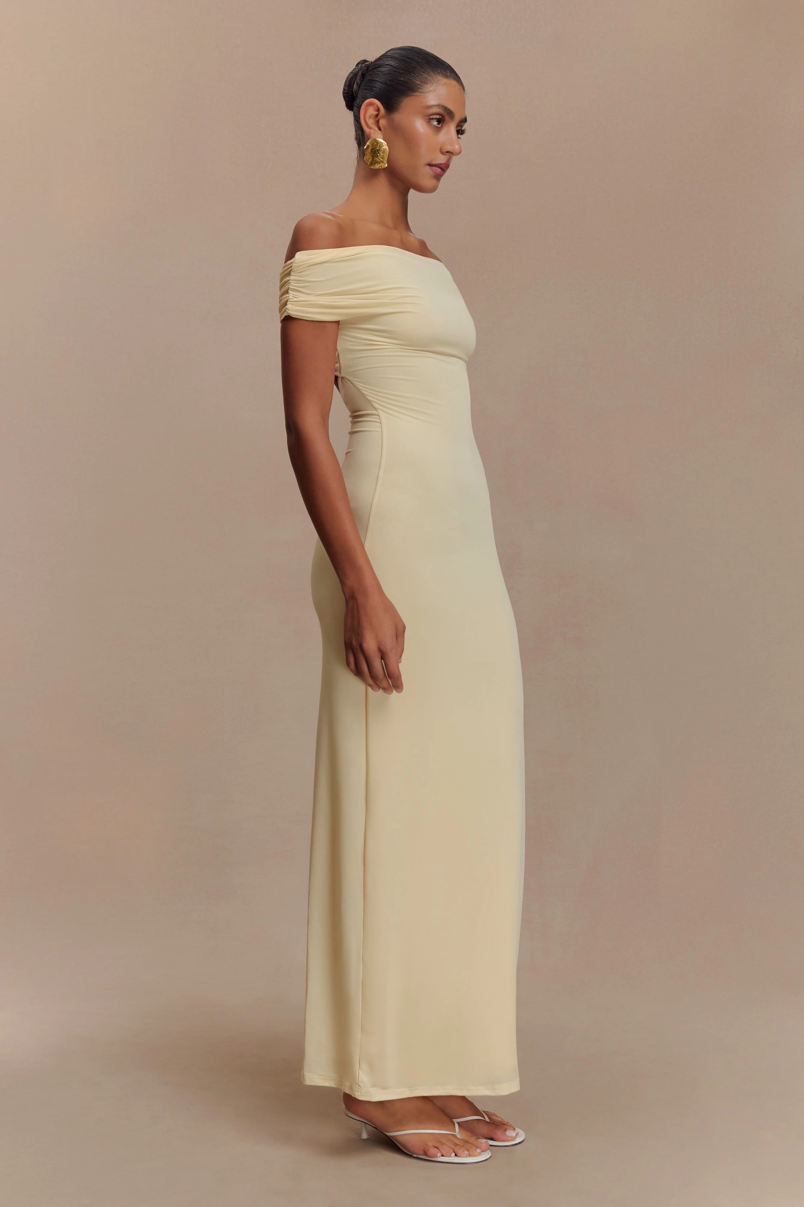 Imogen Off Shoulder Slinky Maxi Dress - Lemon