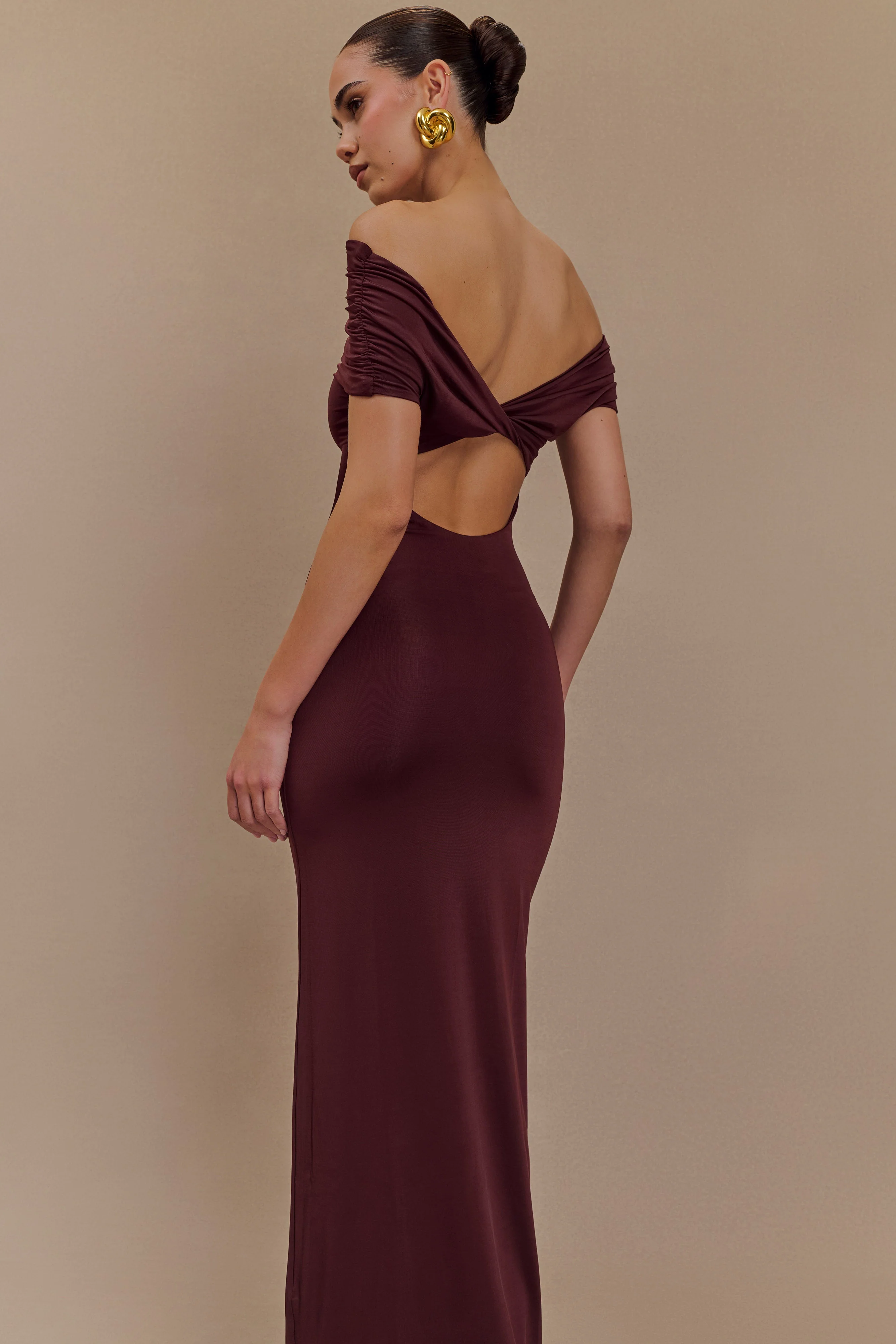 Imogen Off Shoulder Slinky Maxi Dress - Mahogany